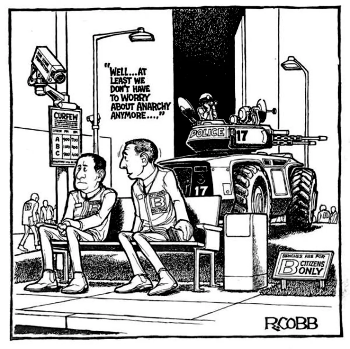 The mealy-mouthed wittering about “a society’s norms and values” are just a spoonful of sugar on the shit sandwich that is this astonishing clarion call for Orwellian thought control. The intent of the article is clear: everything you say and read and hear must be rigidly controlled by your masters. After all, free speech is “harm”: