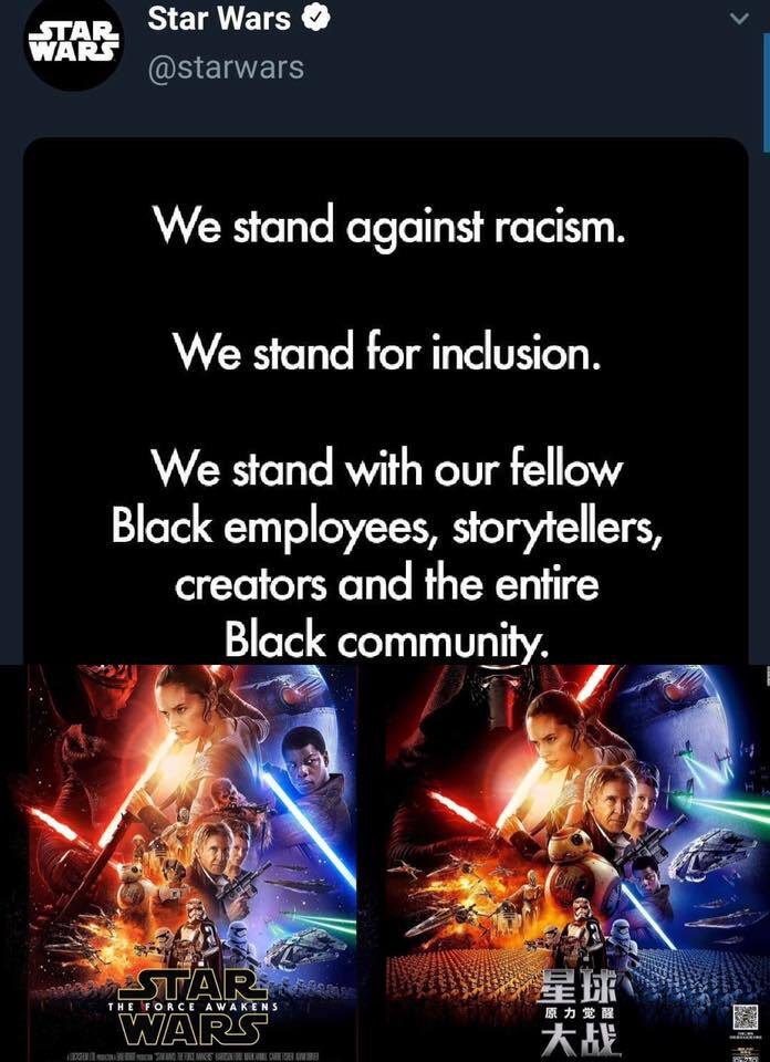 When virtue-signals go wrong. Notice anything different about the poster for the Chinese market?