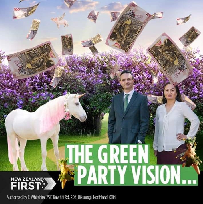 NZ First ran an attack ad against the Green Party for being fantasists who are unsuited to the government benches.