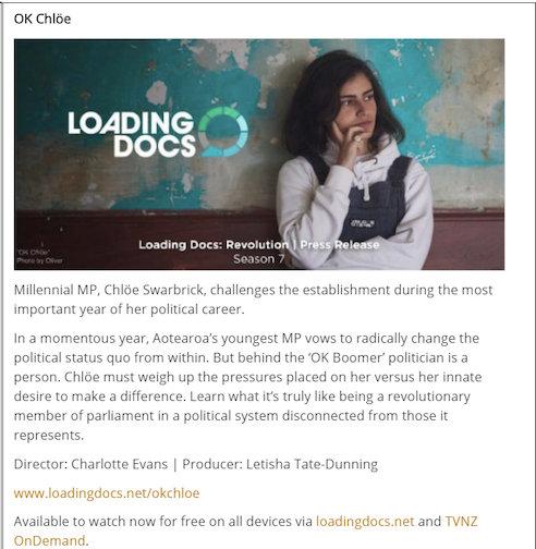 NZ On Air and The NZ Film Commission have produced 8 short documentaries, released during the election campaign period, using taxpayers money. Three of the eight documentaries are closely related to the election campaigns of the present coalition government. What an amazing coincidence.