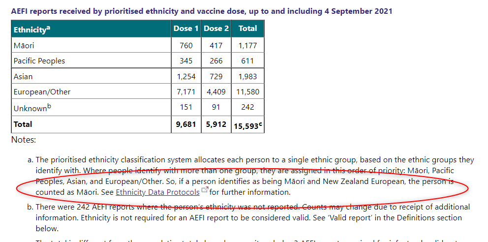 In it, they artificially inflate the number of adverse effects assigned to Maoris. See below. Then even with the artificially inflated numbers, they can NOT demonstrate that Maori have more adverse reactions. 7.6% versus 16% total population (not corrected for vaccine uptake). Therefore, the vaccine is worse for non-Maori than Maori. This is contrary to the paternalistic claim that Maori are always worse affected by everything than everyone else and therefore need special treatment.