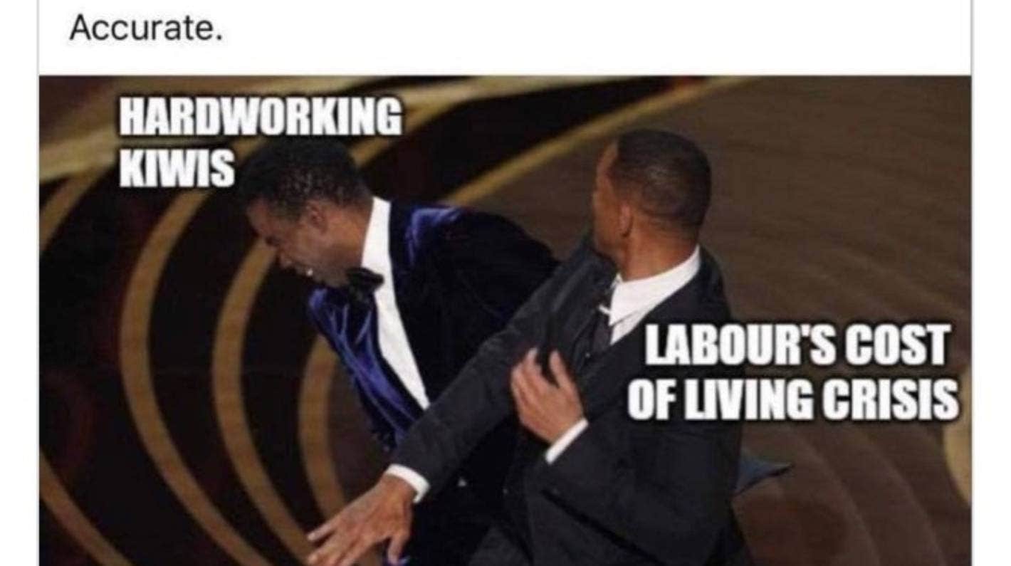 The National Party has taken down a meme it posted comparing the Government to Will Smith slapping Chris Rock.