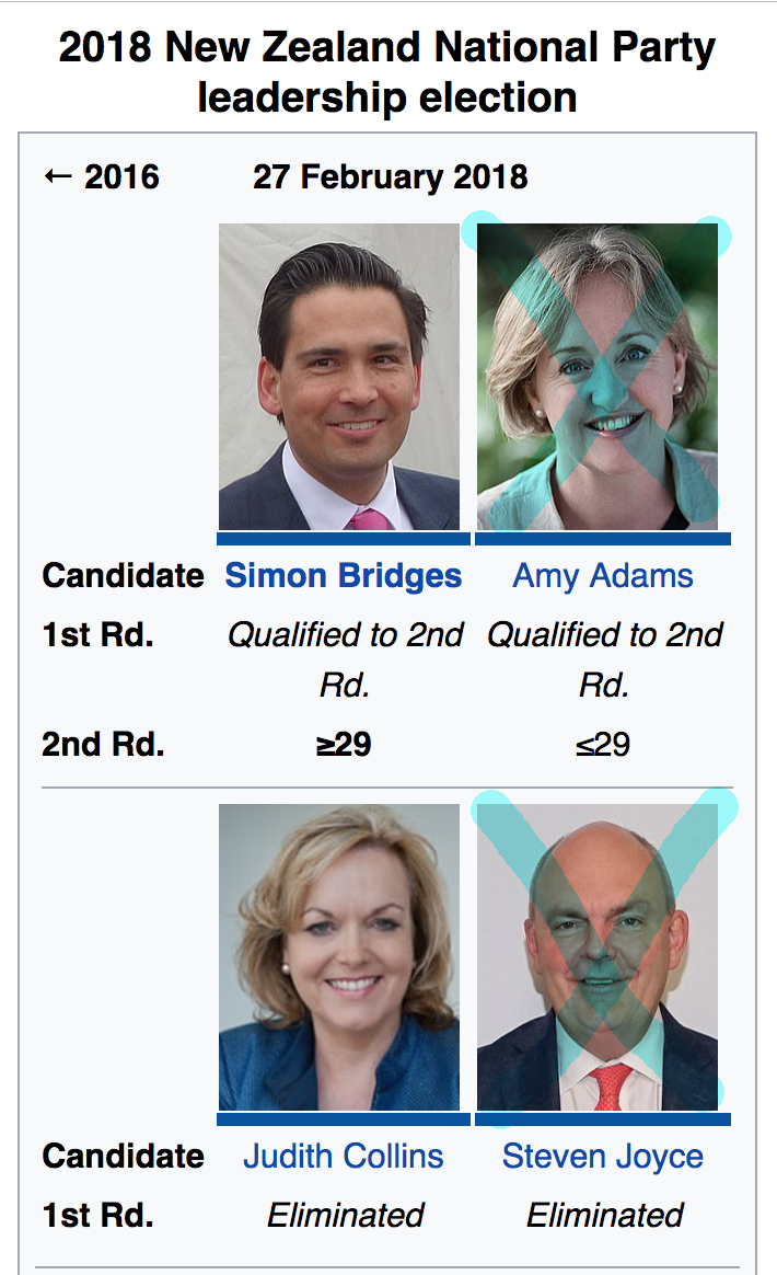 That leaves only two of the previous four contenders for the leadership of the National party.