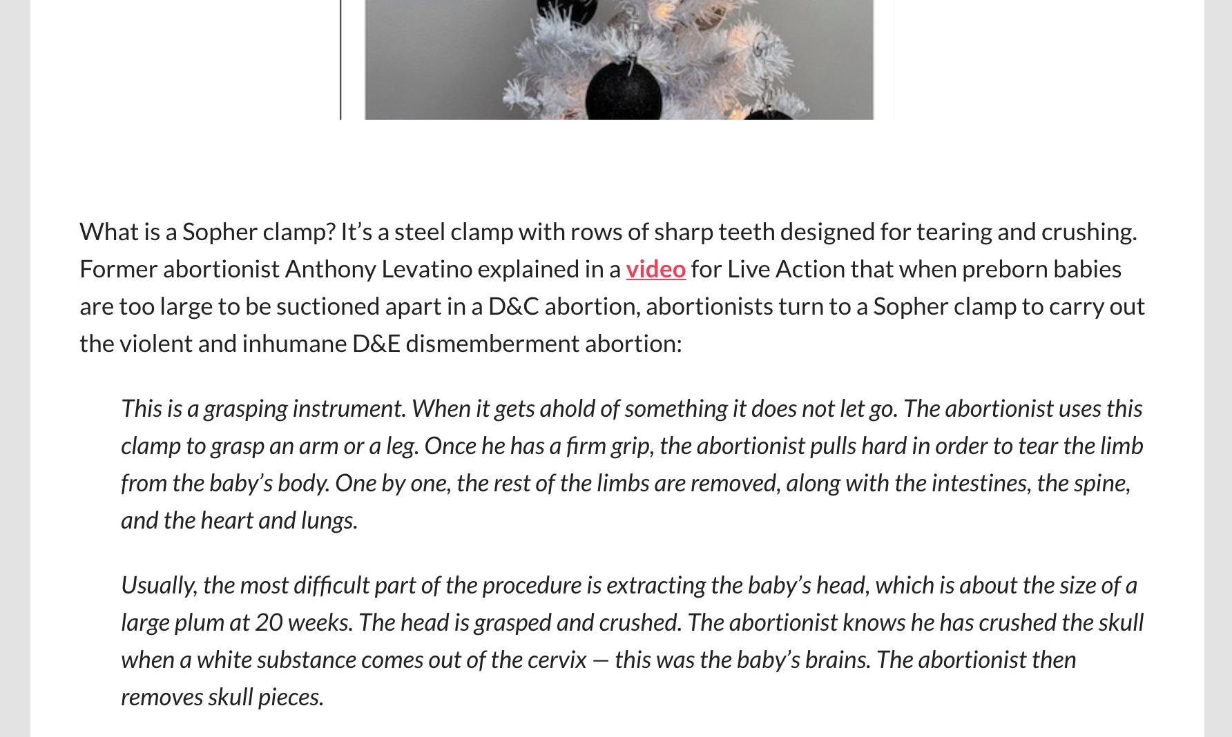 Michael Anthony an abortion clinic employee posted a tweet this week about how he was celebrating the birth of Christ by topping his Christmas tree with a Sopher clamp.