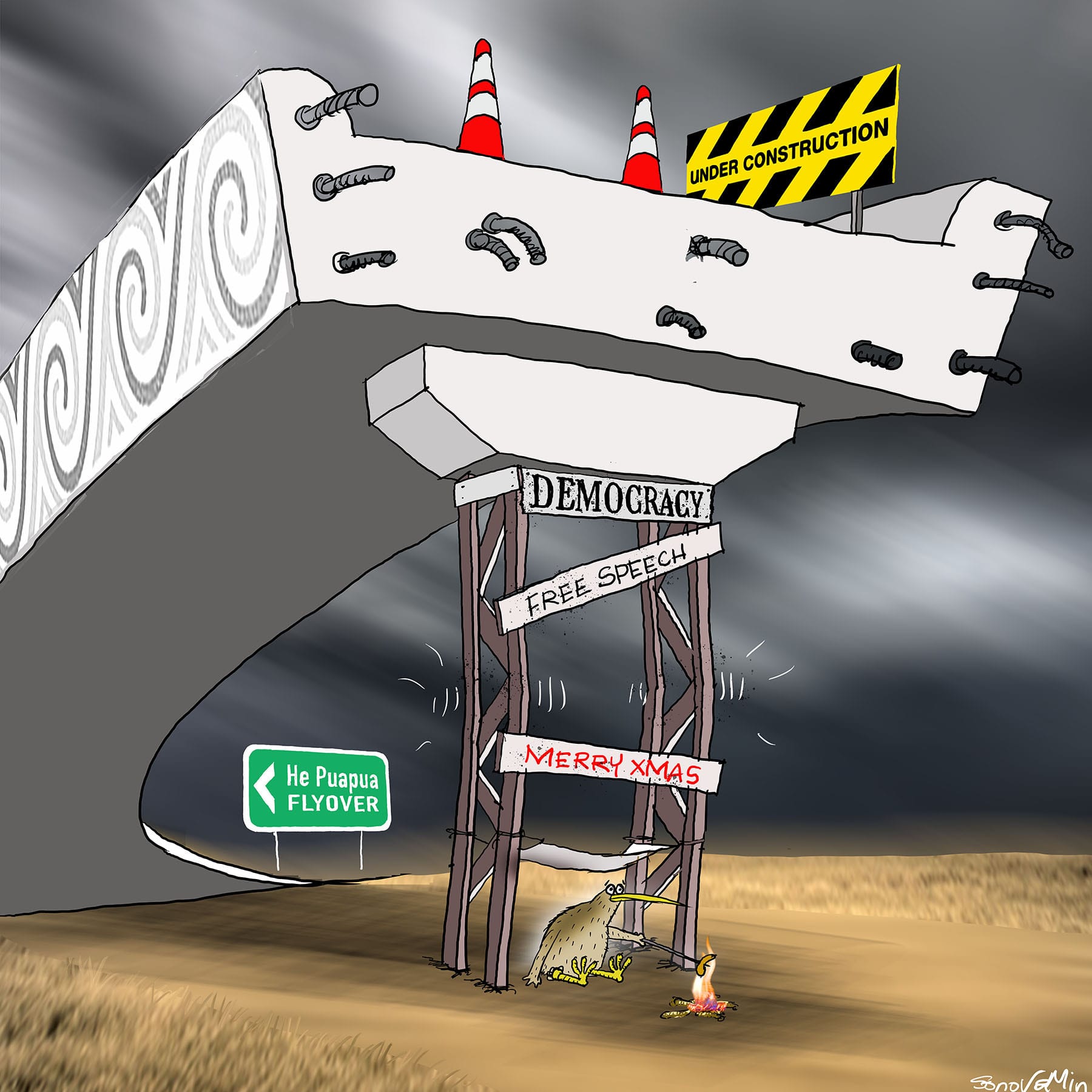 Flyover. Cartoon credit SonovaMin. The BFD.