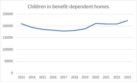 So, even against a backdrop of low unemployment, it is no surprise that the number of children in benefit-dependent homes has risen. Why does it matter? If these children have been technically lifted out of poverty, isn’t that a good thing?