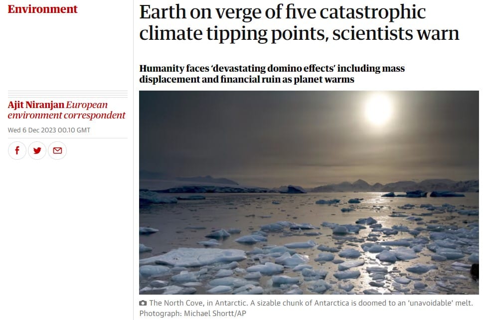 With the advent of COP28, the media are in full climate-alarm mode and climate tipping points are once again in the headlines.