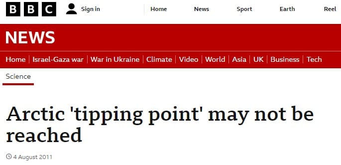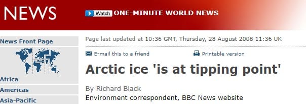 In 2008 the BBC was still pushing the Arctic ice tipping point.