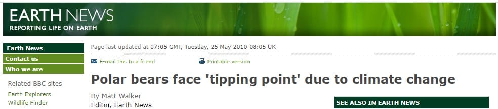 In the interim (2010), the Arctic tipping point had expanded to include polar bears: