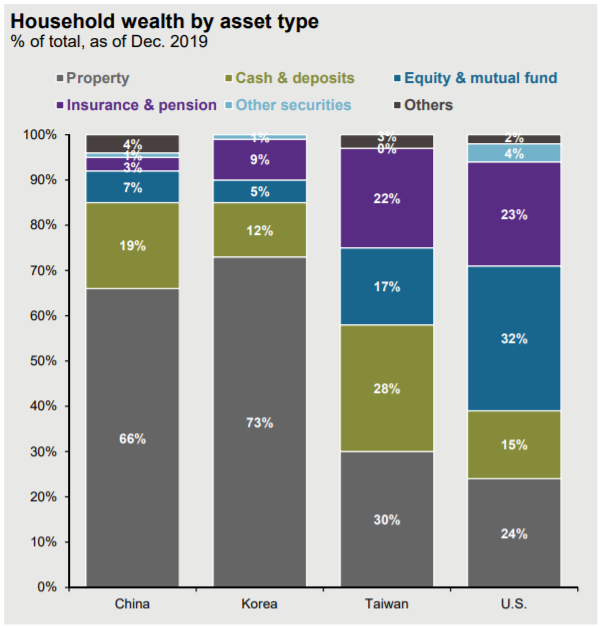In fact, the Chinese — along with South Koreans and New Zealanders — have some of the most concentrated levels of household wealth in property: