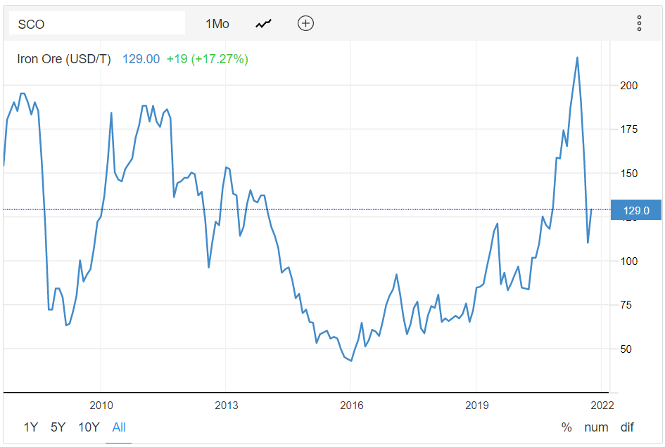 If we look at the long-run iron ore price since 2010, we are, in fact, back to the mid-price level despite signs around the world that more will be needed: