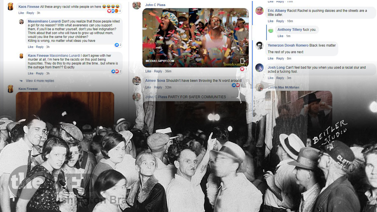 In the past, lynching parties necessitated physical participation – in the age of social media and at a time of state-mandated social distancing, lynching has moved online. Where once jeering crowds surrounded the hanging tree, online mobs of hooting, gleeful thugs congregate on social media to celebrate the murder of another uppity cracker.