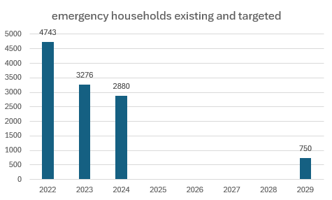 – (alongside HUD) to reduce the number of households in emergency housing by 75 percent, by June 2029 – this is fewer than 800 households in emergency housing.