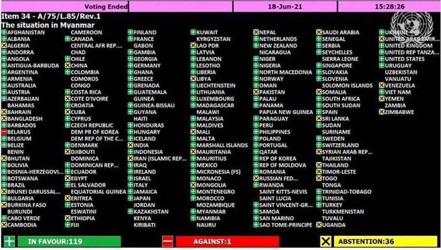 A vote took place in the UN on stopping the supply of arms to Myanmar. The results are below.