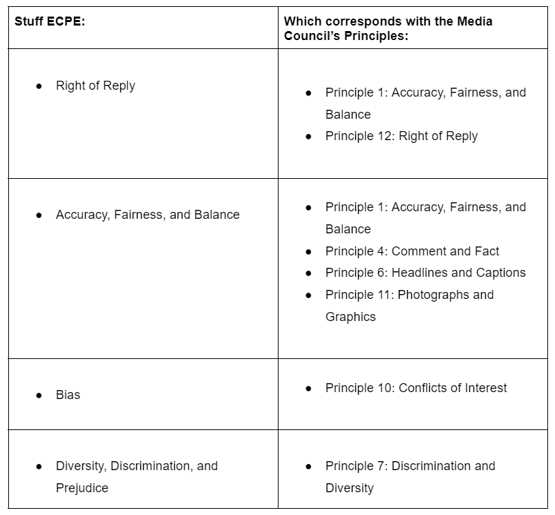 VFF’s Complaint outlined how The Programme significantly breached Stuff’s own Editorial Code of Practice and Ethics (Stuff ECPE). It also included a number of the many Media Council Principles and Broadcasting Standards Principles it breached, namely: