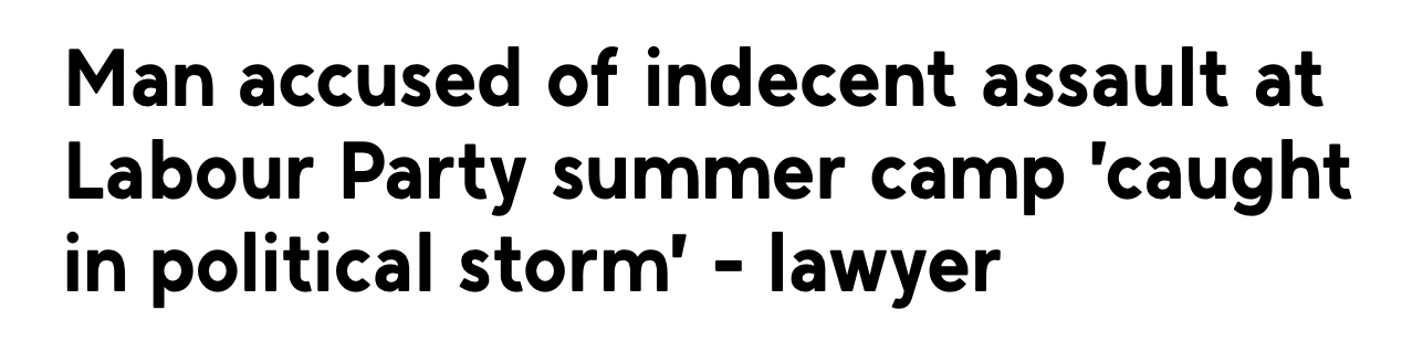 The Young Labour Camp sexual assault trial contains all the usual defences for the alleged actions of the accused. He was very drunk and cannot recall his actions, is one defence ie the booze made me do it.