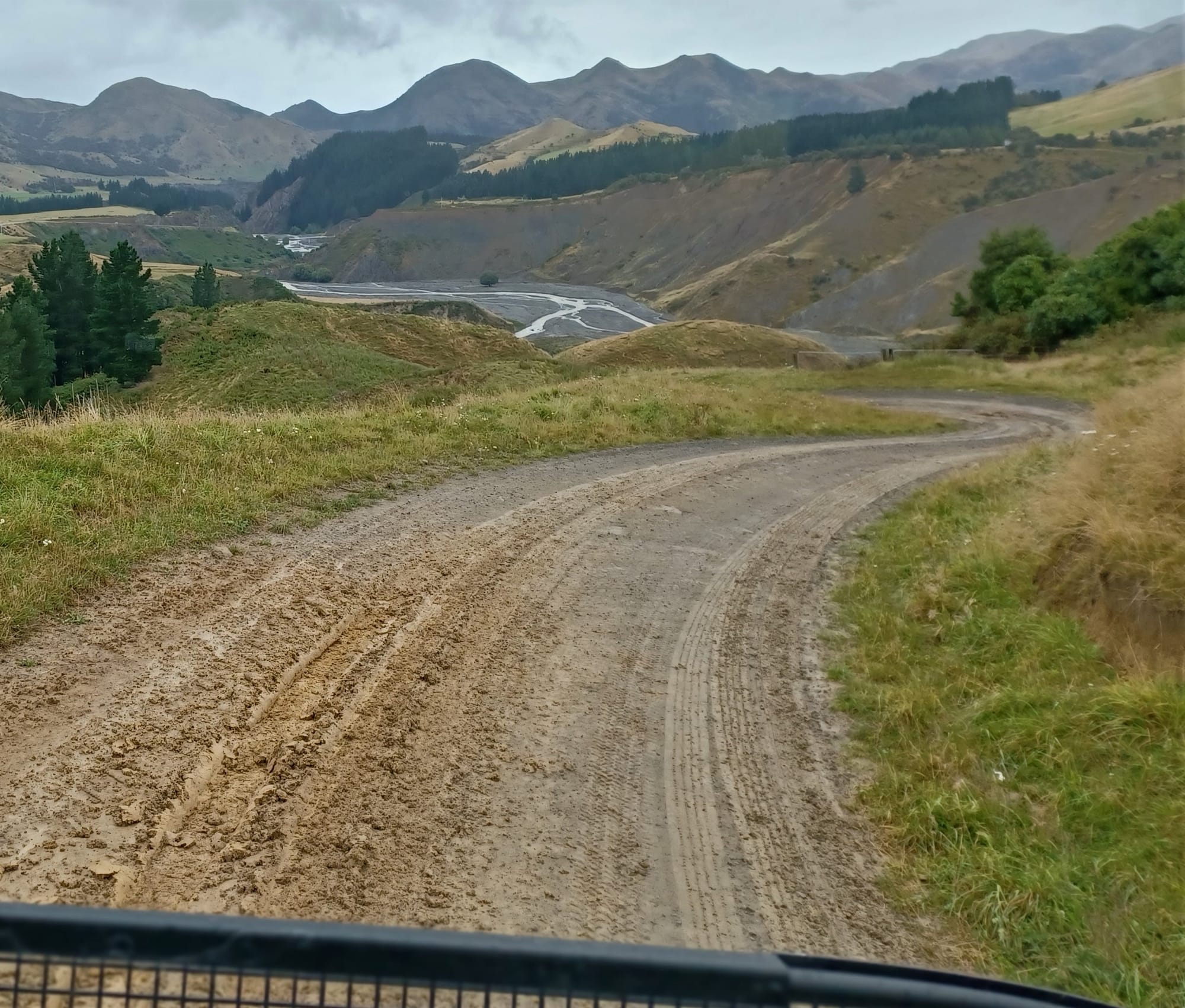 Yesterday’s photo was taken on a gloomy day looking down on the Conway River and the bridge in the distance from Cloudy Range Road, off the Inland Kaikoura Road.