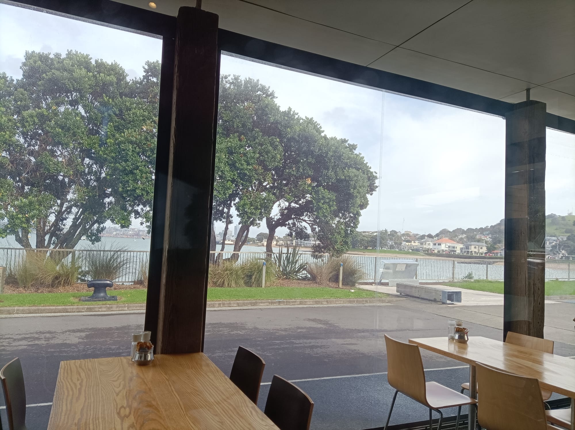 Yesterday’s photo was the view from the Torpedo Bay Café at the Navy Museum, Devonport. Looking out towards King Edward Parade and Mount Victoria on the right and downtown Auckland in the middle.
