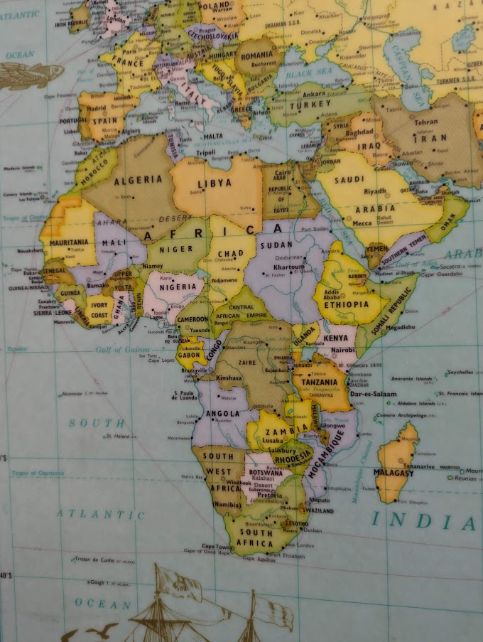 Yesterday’s photo is of the map in Phoenix Takeaways in Kenya St in Ngaio and the clue is the Central African Empire. This only existed from 4 December 1976 when the then-President of the Central African Republic, Jean-Bédel Bokassa, declared himself Emperor of Central Africa. The empire was dissolved less than three years later when French and Central African forces overthrew Bokassa and re-established the Central African Republic on 21 September 1979.