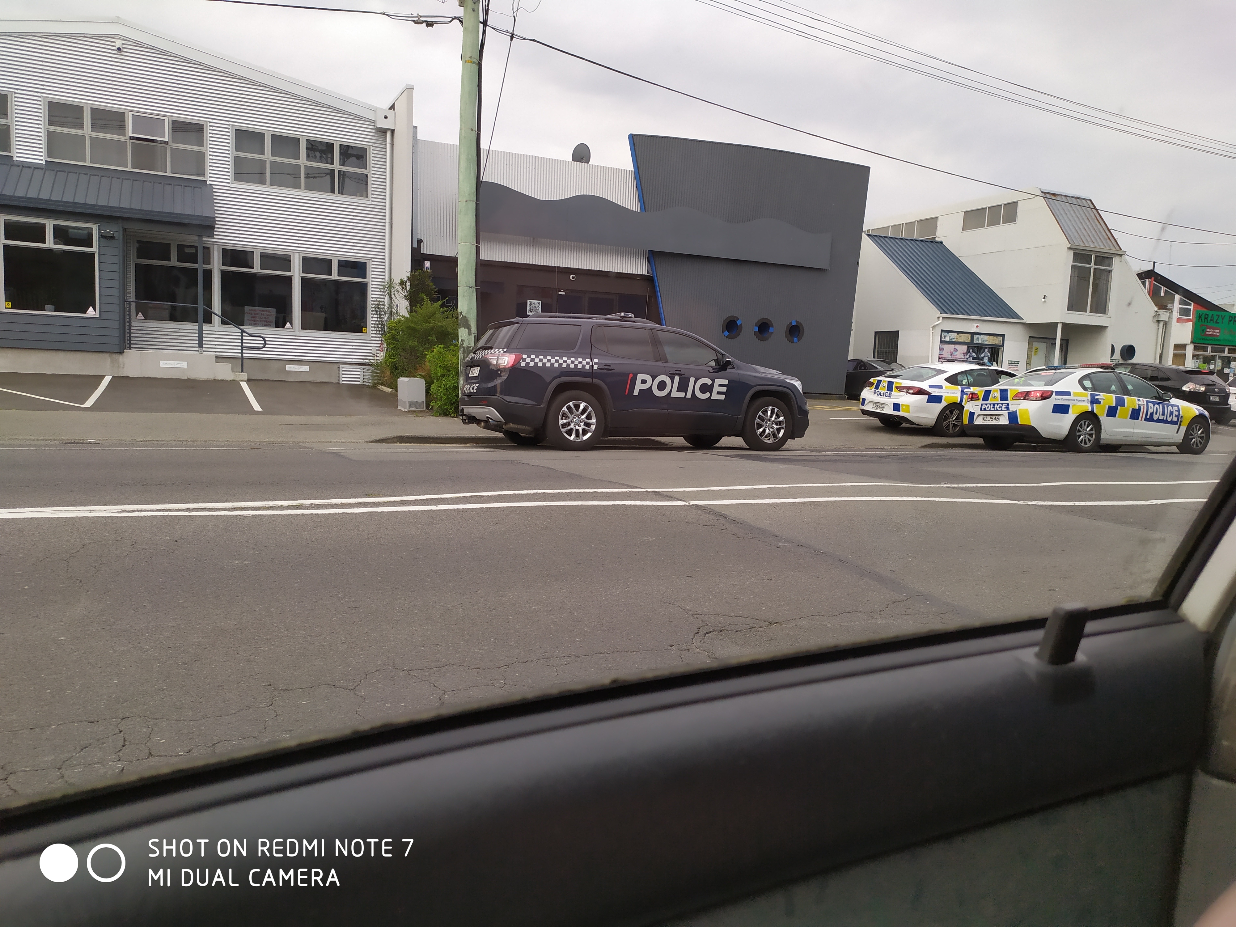Yesterday’s view is from a recent trip to Christchurch. I came across a group of our nation’s finest, including an Armed Response Team having a wee get-together on the side of the road. The grey building they are assembled outside of is located at 427 Tuam St. Due to the cellphone camera’s limitations, you probably can’t read what is written on the door, but I can advise that the two URLs are “menfriends.co.nz” and “altsexcafe.com“. That’s right, it is a popular men-only sauna/sex club.