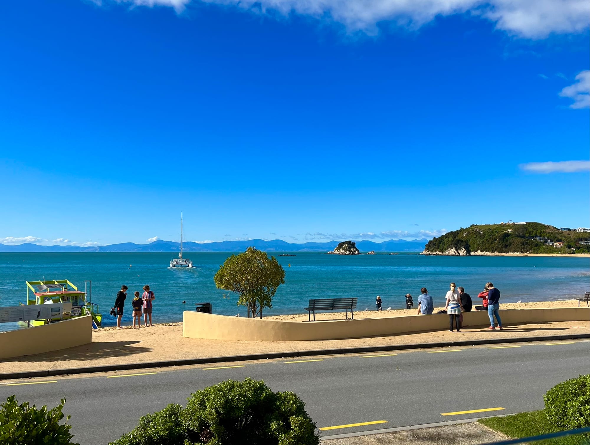 Yesterday’s photo was looking out at Tasman Bay from our table at the Waterfront Cafe, Kaiteriteri Beach.