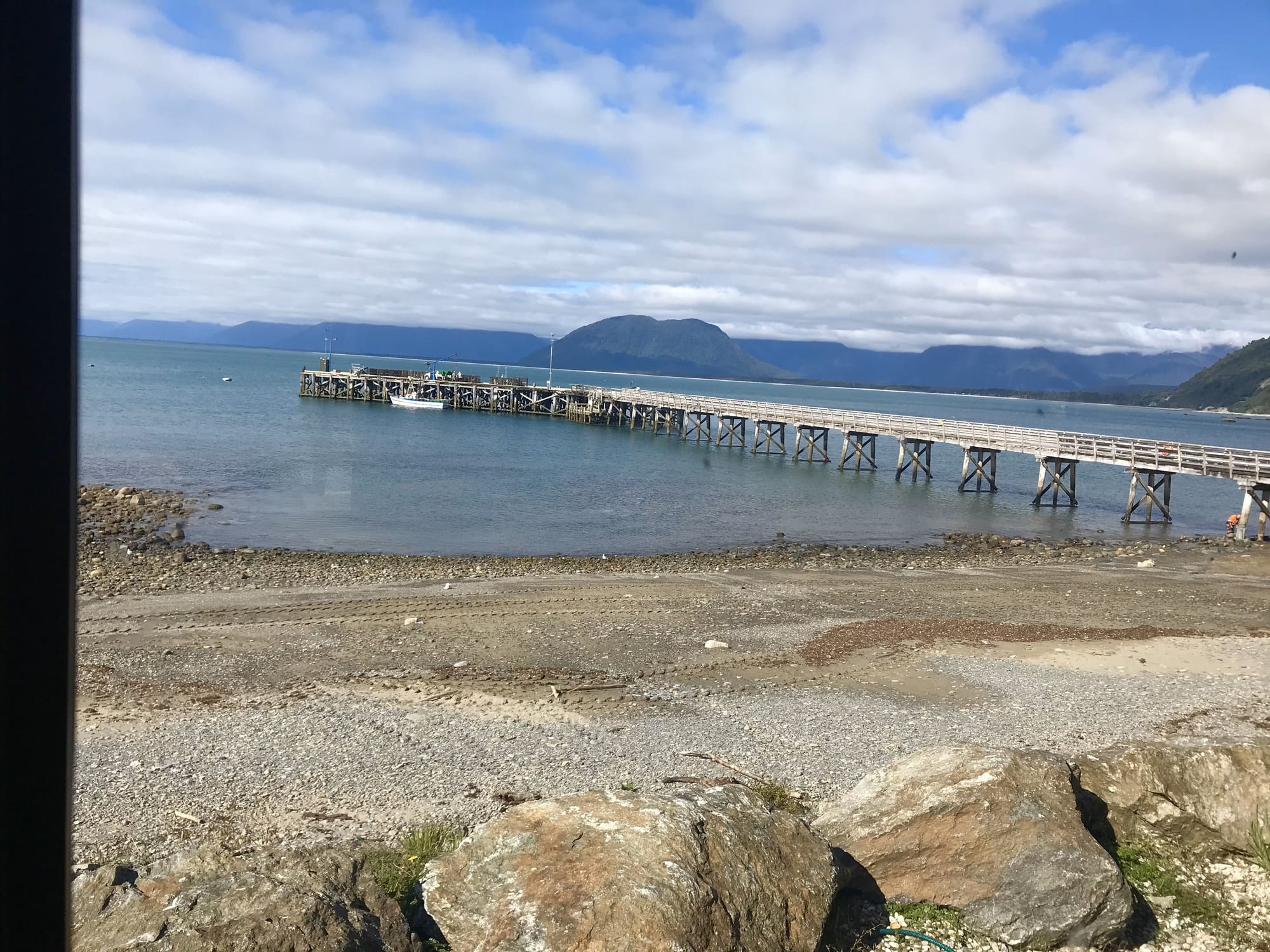 Yesterday’s photo was taken looking at the Jackson Bay wharf from our table at The Craypot, Jackson Bay, South Westland.