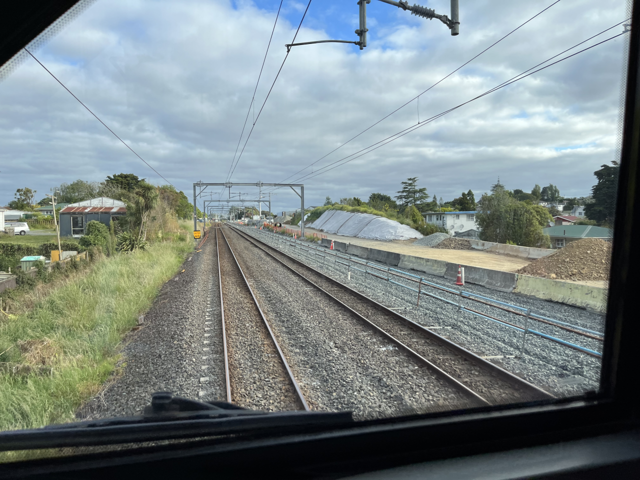 Yesterday’s photo was taken from the cab of a Kiwirail DL locomotive. It is of NIMT southbound near Woolfield Road, Papatoetoe.