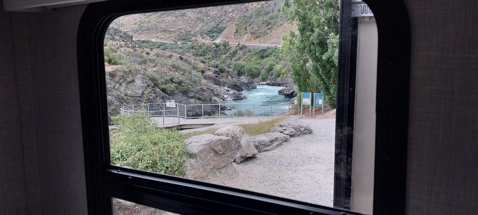 Yesterday’s view is of the Kawarau River at the Roaring Meg hydropower station between Cromwell and Queenstown. There are two power generation stations here generating a combined 4000kw.