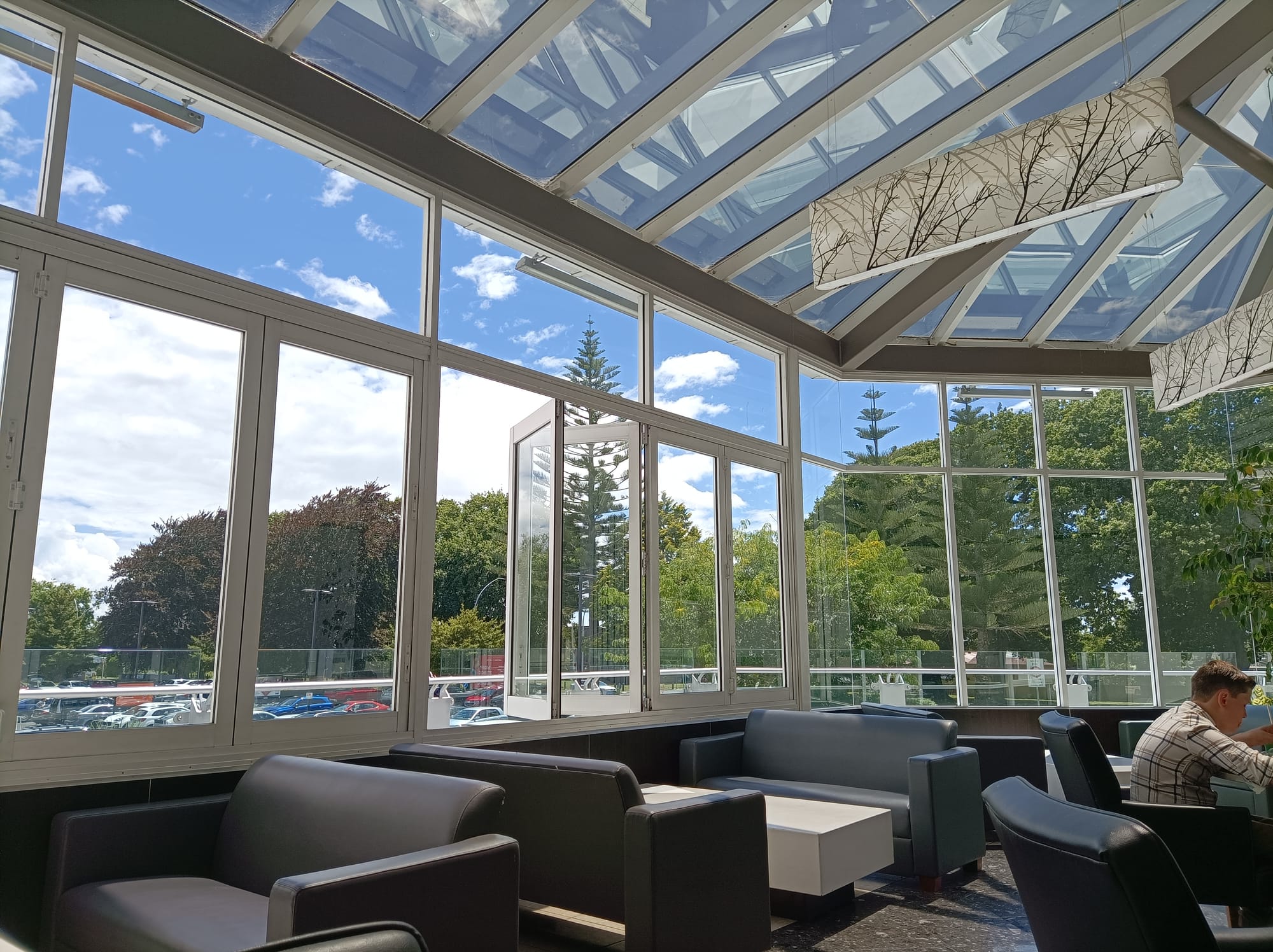 Yesterday’s view was looking out the windows of the Food Court seating, over the car park, towards Hukanui Rd from the Chartwell Shopping Centre, Hamilton.