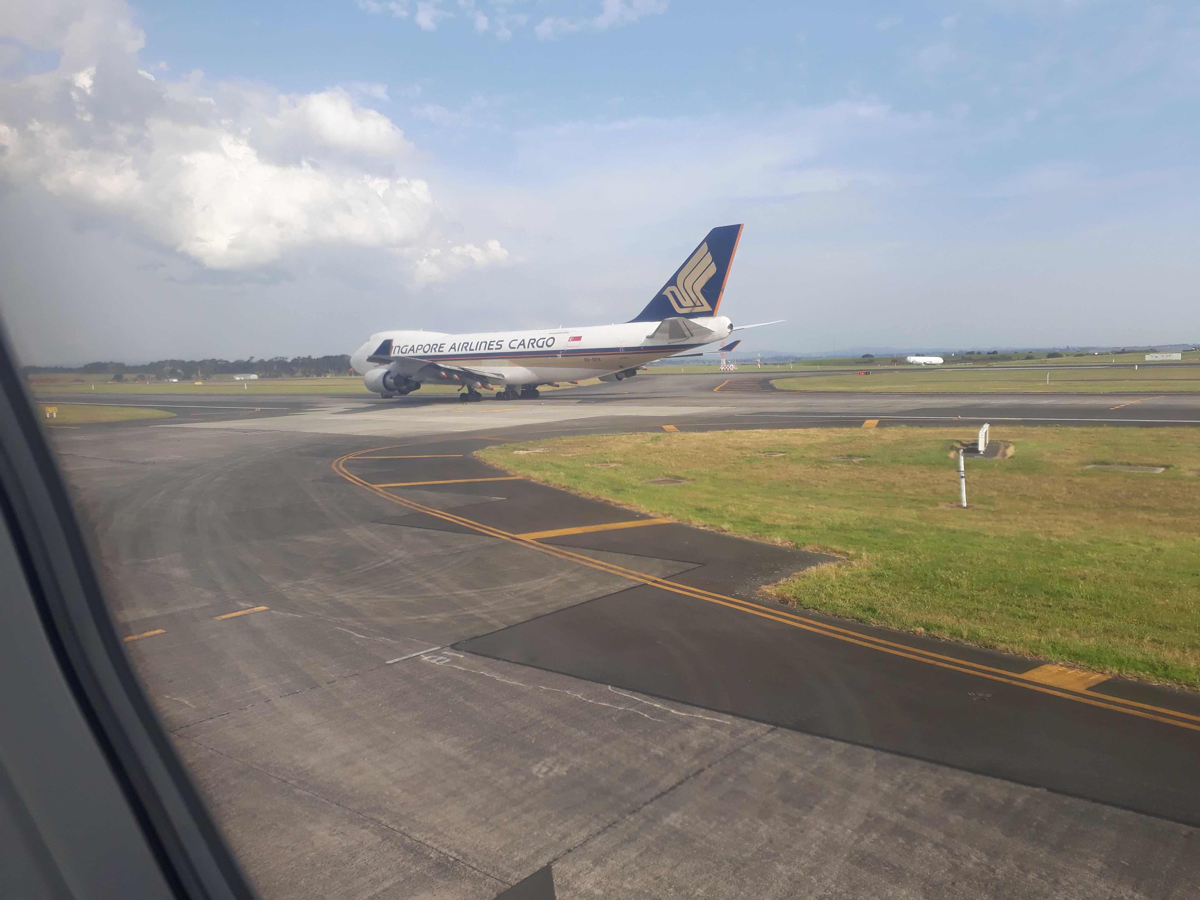 Yesterday’s view was taken as I was Drag racing a cargo plane down adjacent taxiways at Auckland airport.