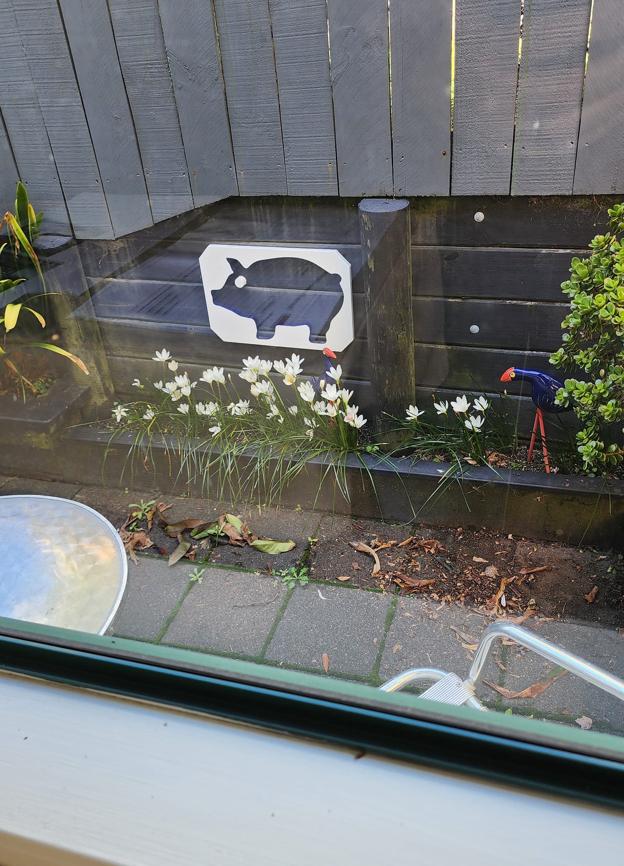 Yesterday’s photo was the view from my office window of a pig from chopping board cut-outs in DuPont Corian.