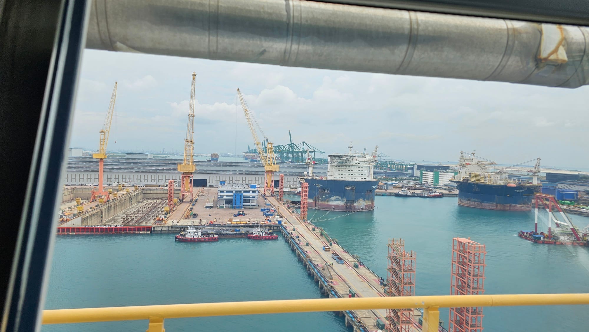 Yesterday’s photo was taken looking east towards Jurong Island, from the bridge of a vessel in the shipyard at Tuas, West Singapore… as far west as you can go in Singapore.