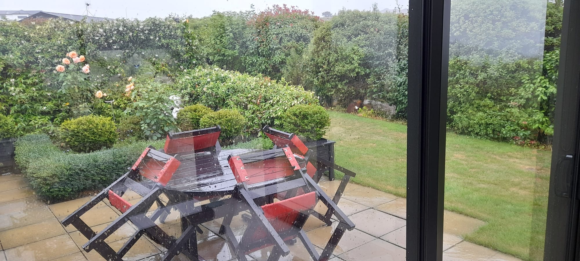 This view is of a recent shot of my roses from our conservatory window in Nelson.