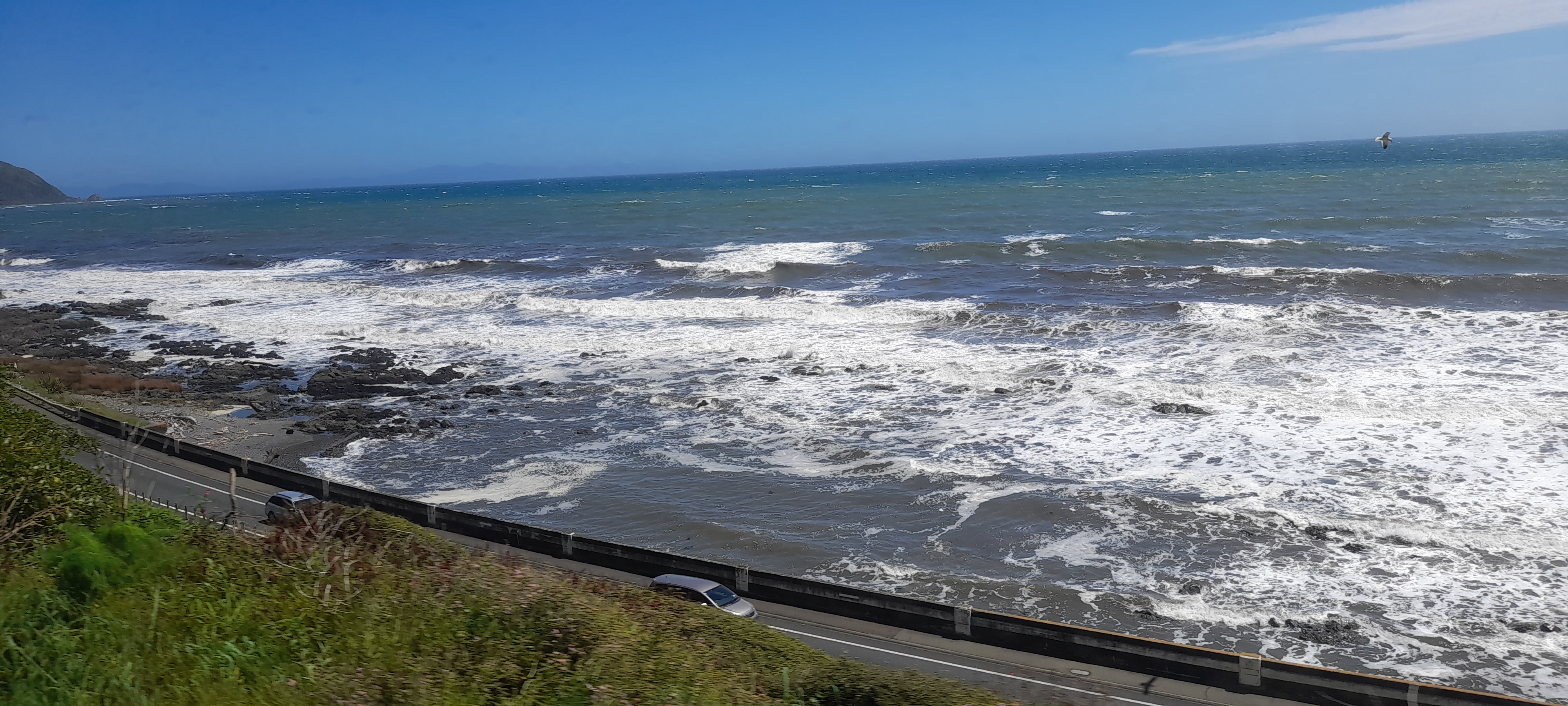 Yesterday’s view was looking over Centennial Highway towards Pukerua Bay, taken from Metlink train, Waikanae to Wellington Line.