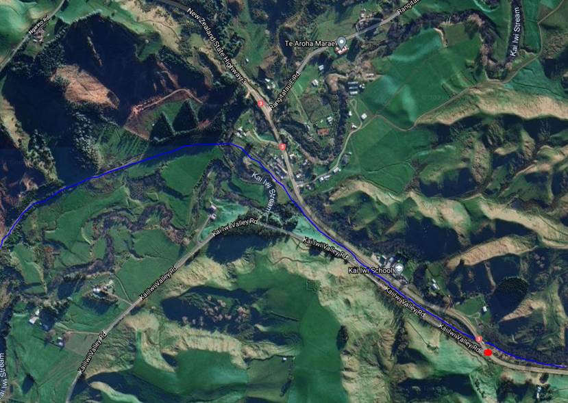 The red dot marks the spot as the GPS locator didn’t work on this pic. The Blue line is the railway line.