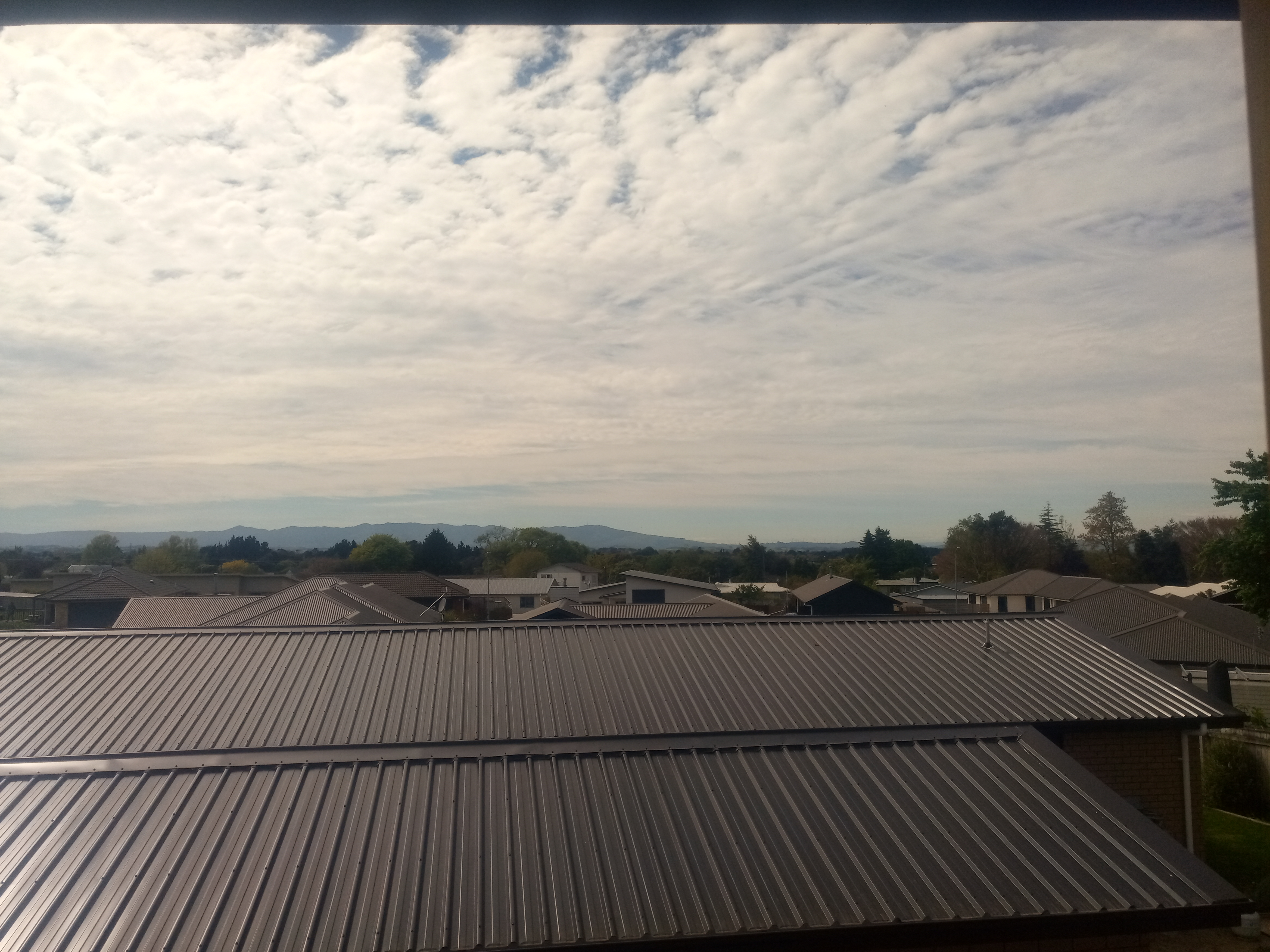 Yesterday’s view was from a house in Poplar Grove, Feilding, looking towards the Manawatu Gorge, with Wharite peak and the Ruahine Range on the left and the Te Apiti wind farm.