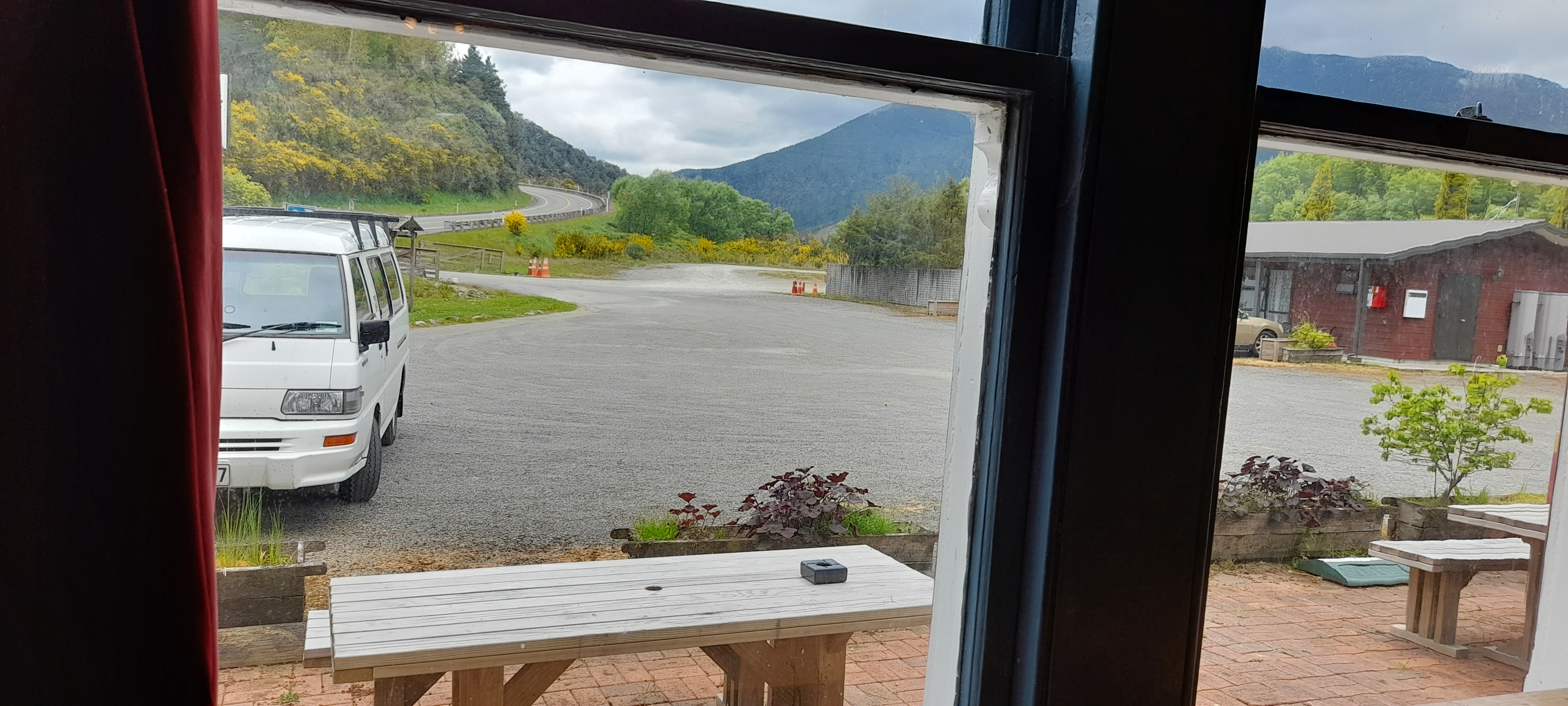 Yesterday’s view was the view from the bar of the Owen River Tavern and motels, SH6 near Murchison. Crumpy wrote somewhere that SH6 was his favourite stretch of road, for its varied scenery, starting from Blenheim; Nelson, down the West Coast, Southern Lakes; ending at Invercargill. It’s the longest highway in NZ, not counting SH1 north and south.