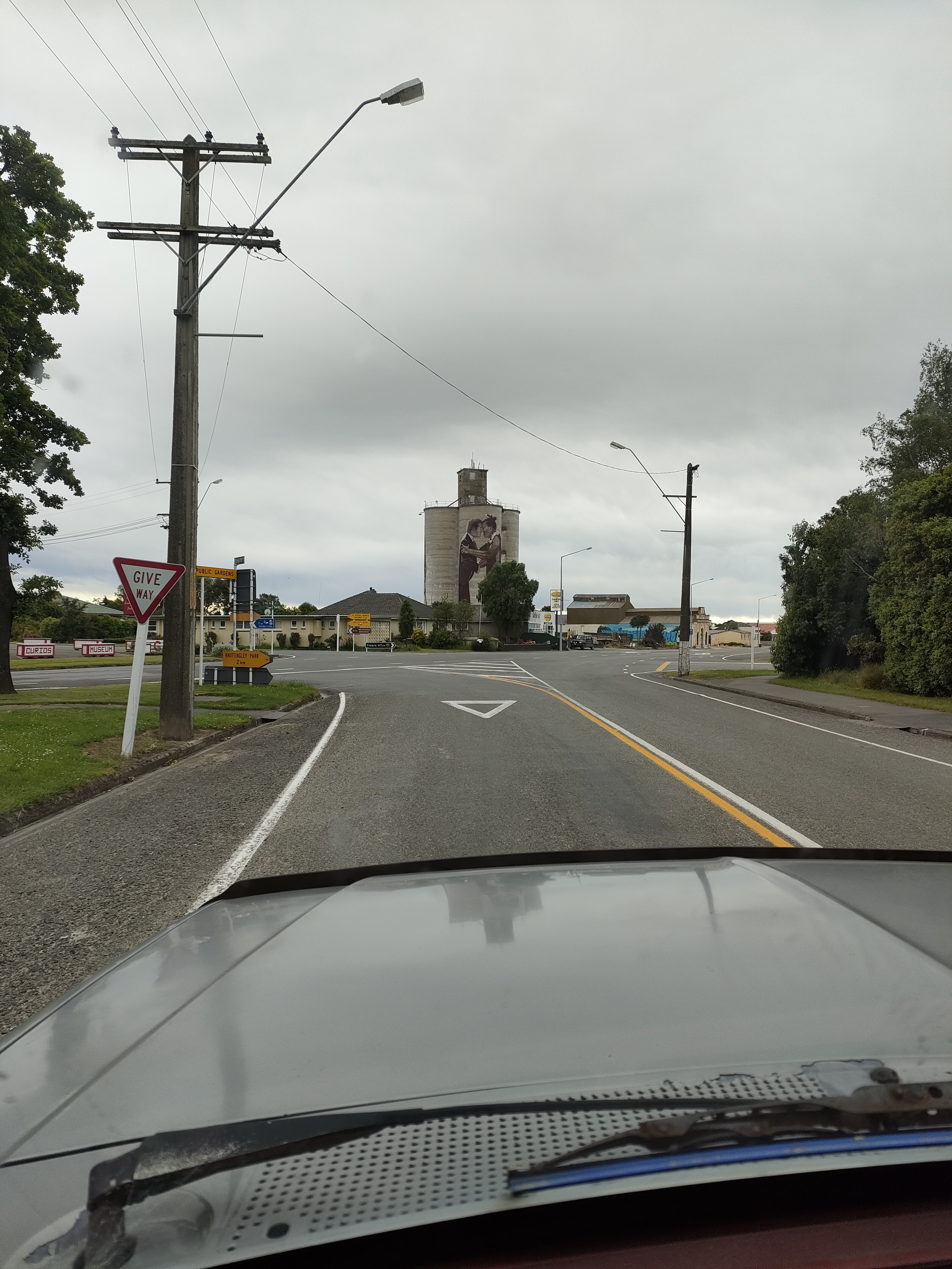 Yesterday’s photo was the view is from my truck on the way into work and is of the old grain silo artwork approaching Waimate from the southern side.