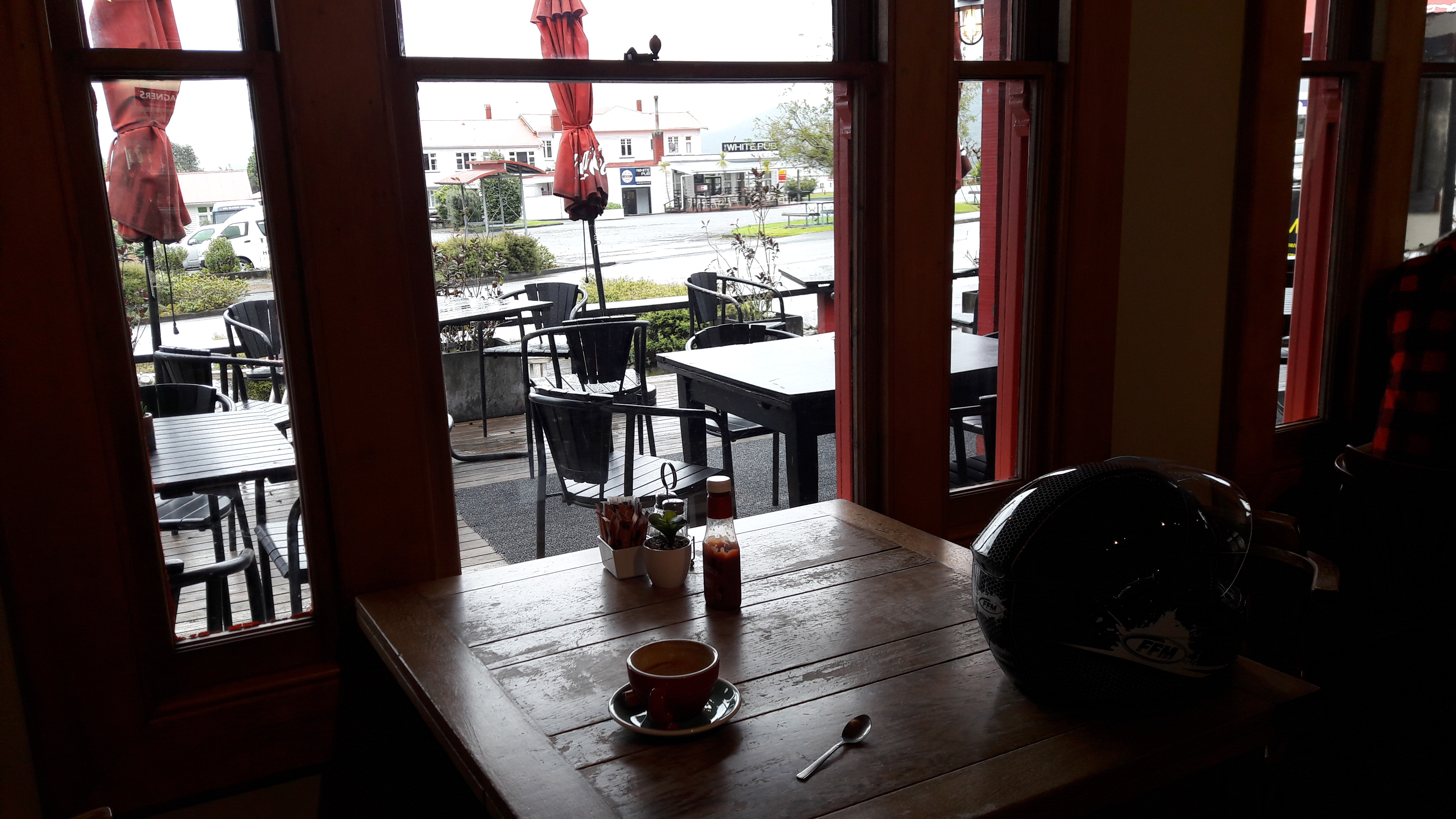 Yesterday’s photo is another tourist pic seen through the screen of the Buell. One of the brief moments when it wasn’t raining. Tranquil Lake Mapourika, about 10kms north of Franz Joseph Glacier Village.