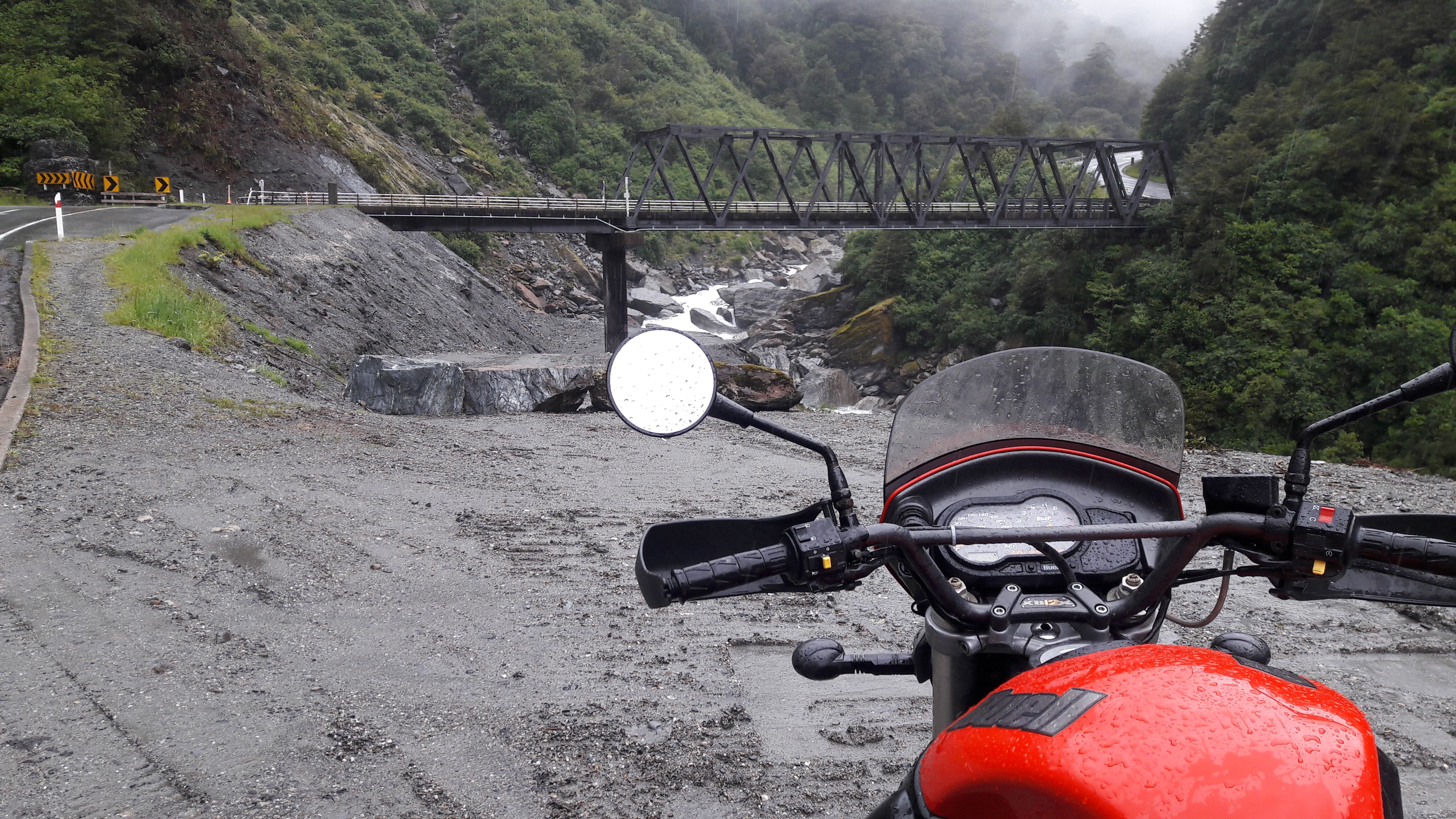 Yesterday’s photo was my view from the Buell at the Gates of Haast on a dreary West Coast day. On stormy days, this place is more akin to the Gates of Hell.