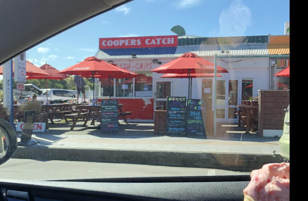 Yesterday’s view: The best fish and chip shop we came across in the South Island! Kaikoura.