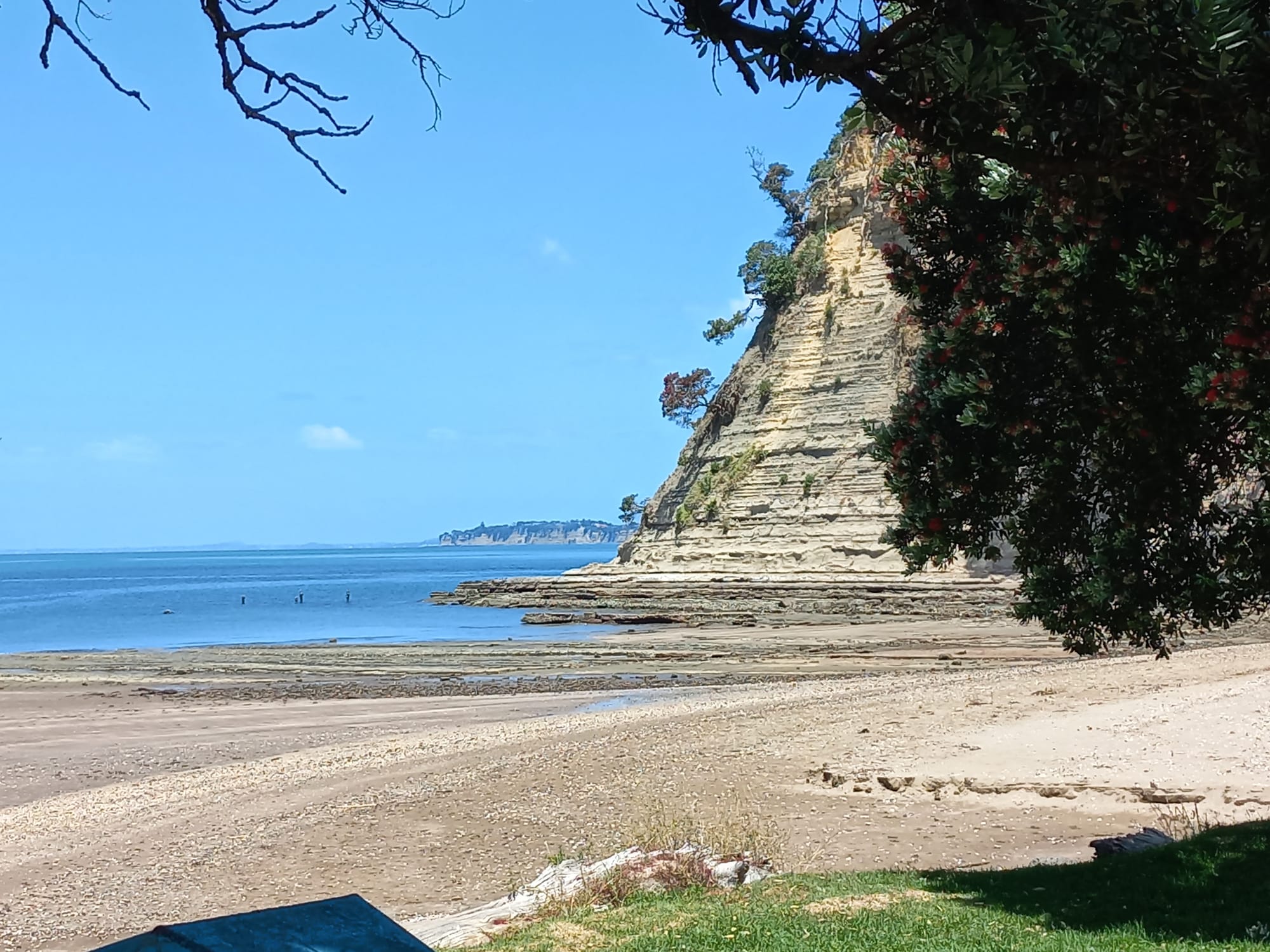 Yesterday’s photo was taken from the western end of Arkles Bay beachfront reserve, Whangaparaoa Peninsular, looking south. Torbay cliffs (Gull Point) in the middle distance, and on the horizon Takapuna and Narrow Neck beaches and the eastern bays of Kohimarama and St Helliers.