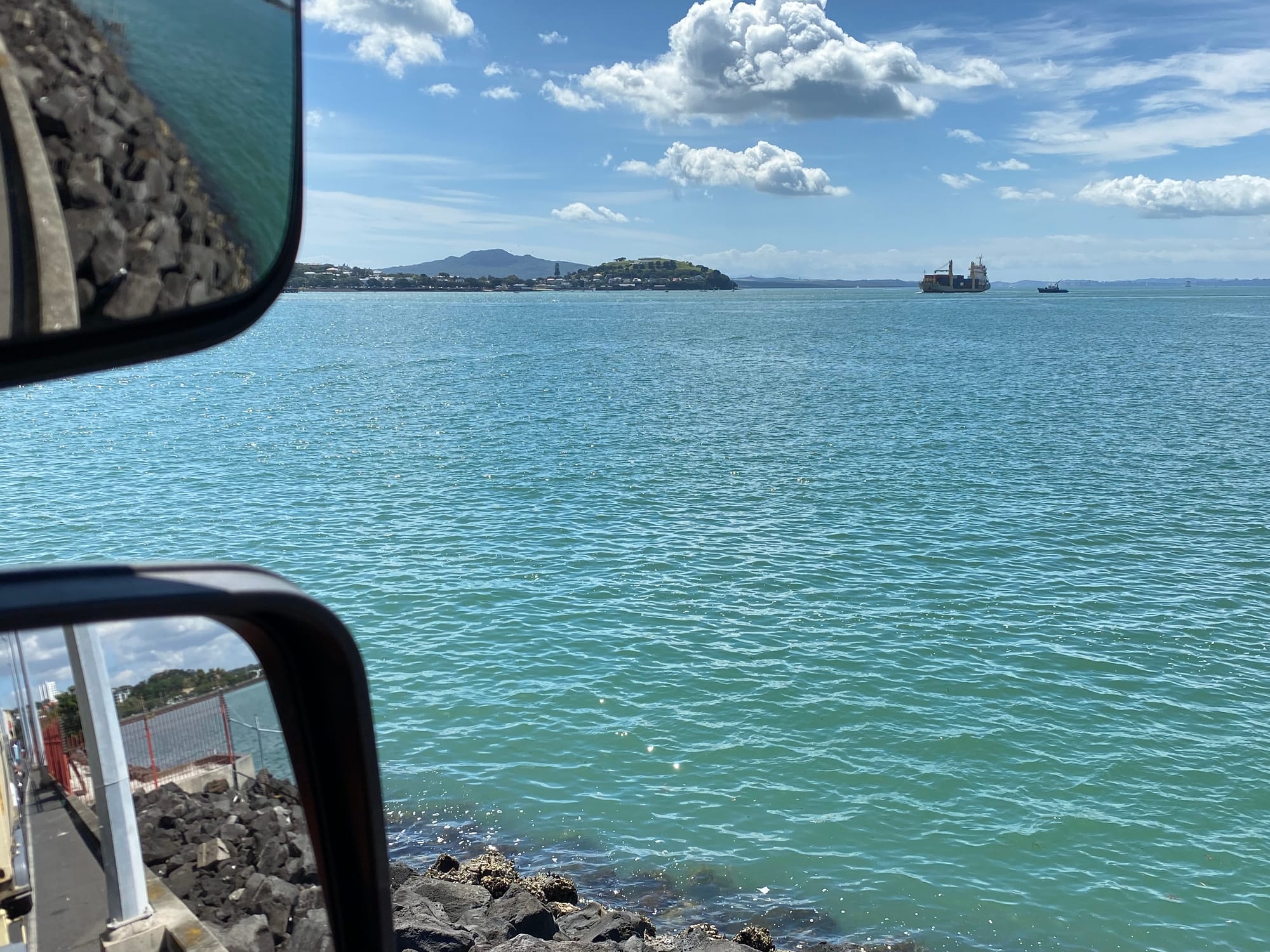 Yesterday’s photo was a view of the Auckland harbour from the Fergusson container terminal truck grid.