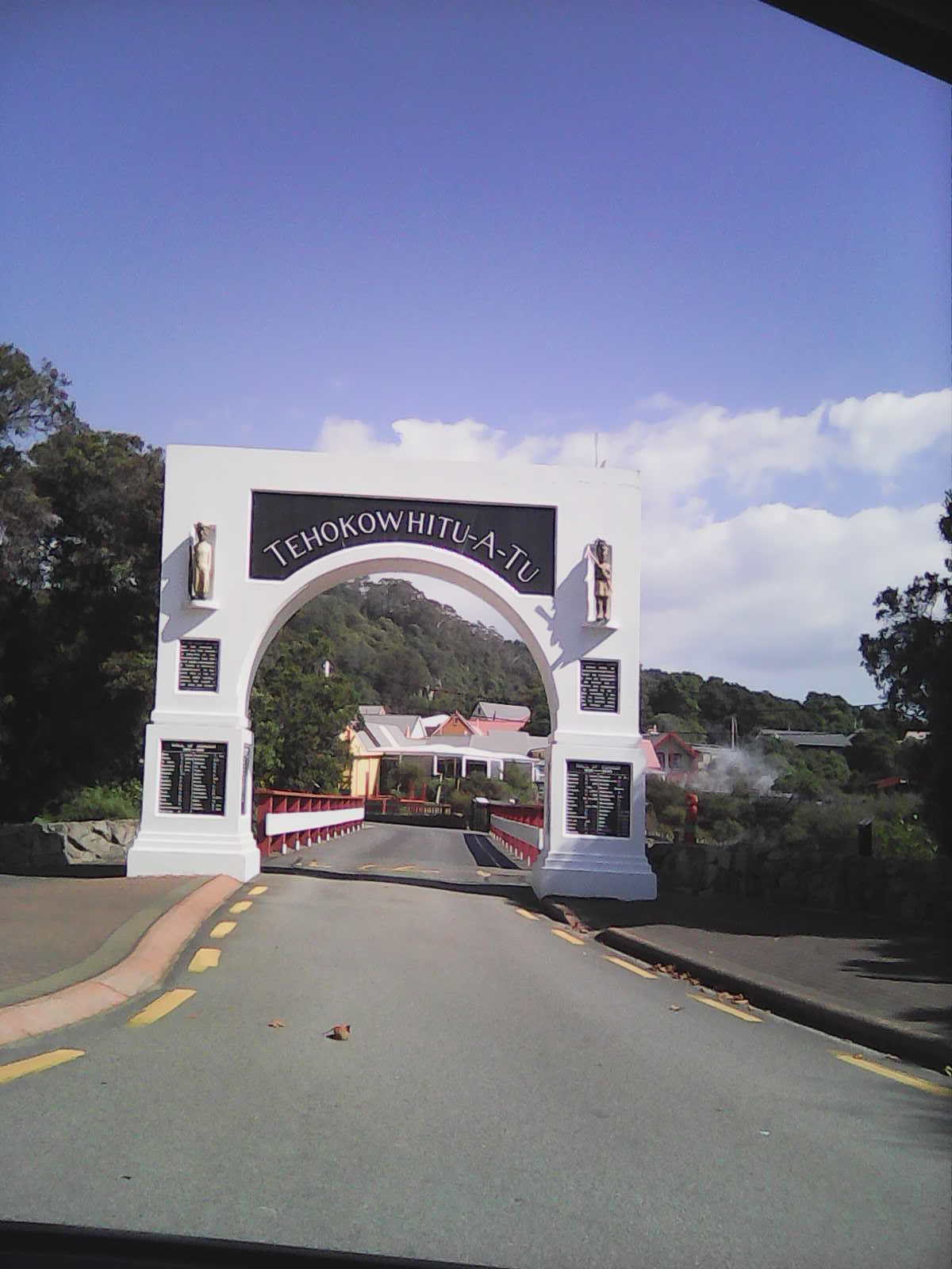 Yesterday’s photo was a view of a memorial gateway to the Maori living village and geothermal area of Whakarewarewa (in Rotorua).