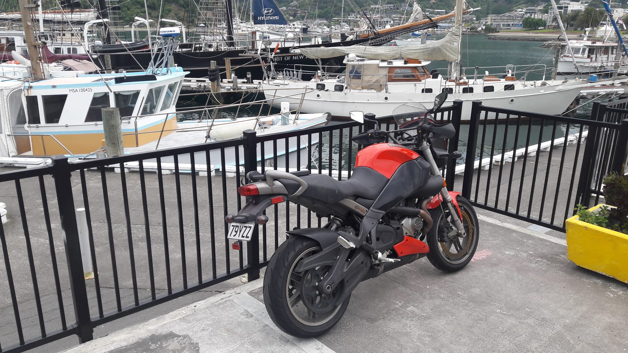 Yesterday’s photo: Time for a pie and coffee at the ferry terminal wharves on the Picton waterfront after a blast up through the Wairau Valley. Spirit of Adventure in the background. Always good to get back to my home town.