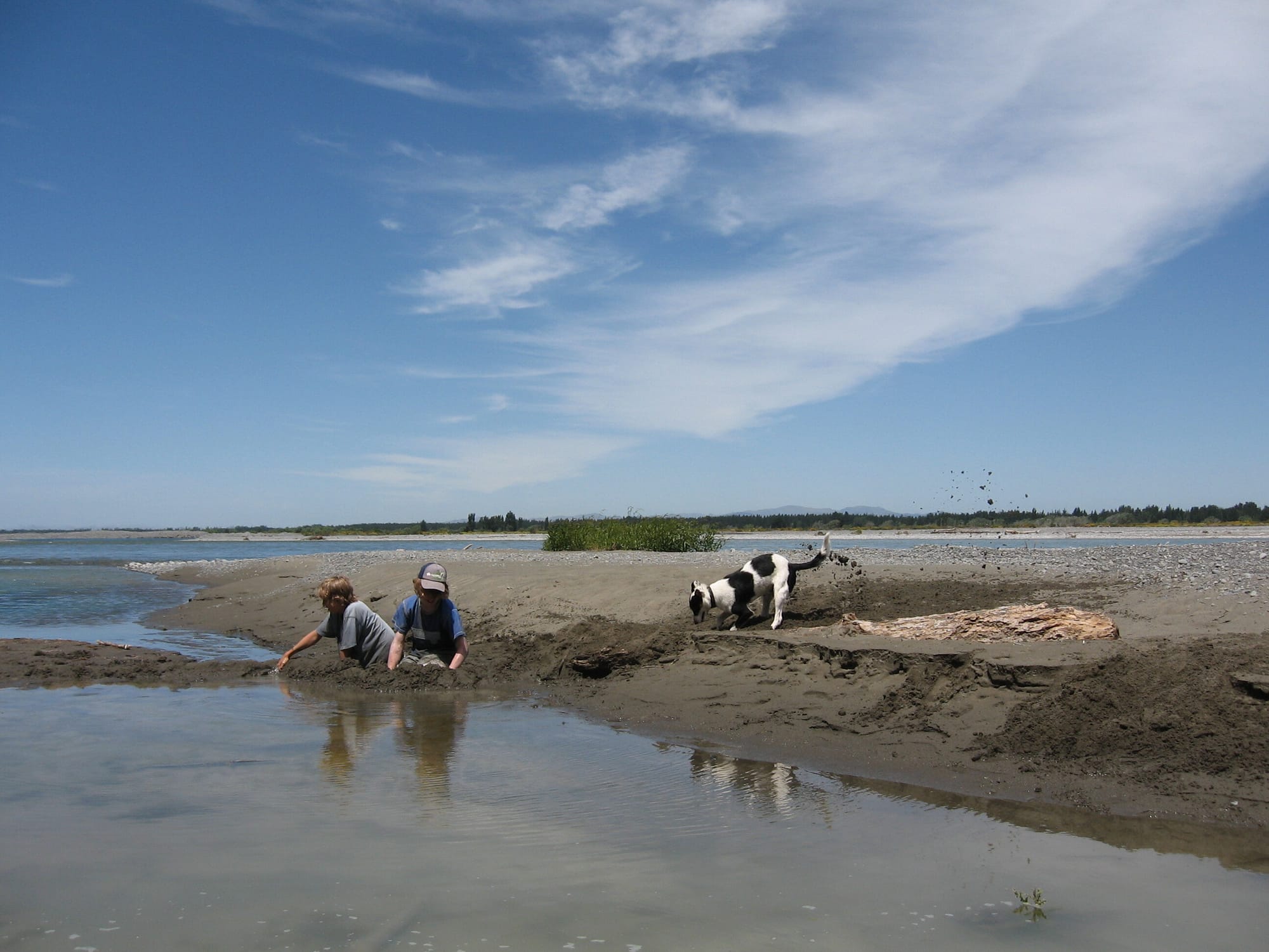 Yesterday’s photo: Attempts to dam the Waimakariri River proving harder than thought, even with the dog doing most of the digging. Popular swimming hole at the end of Downs Road, West Eyreton.
