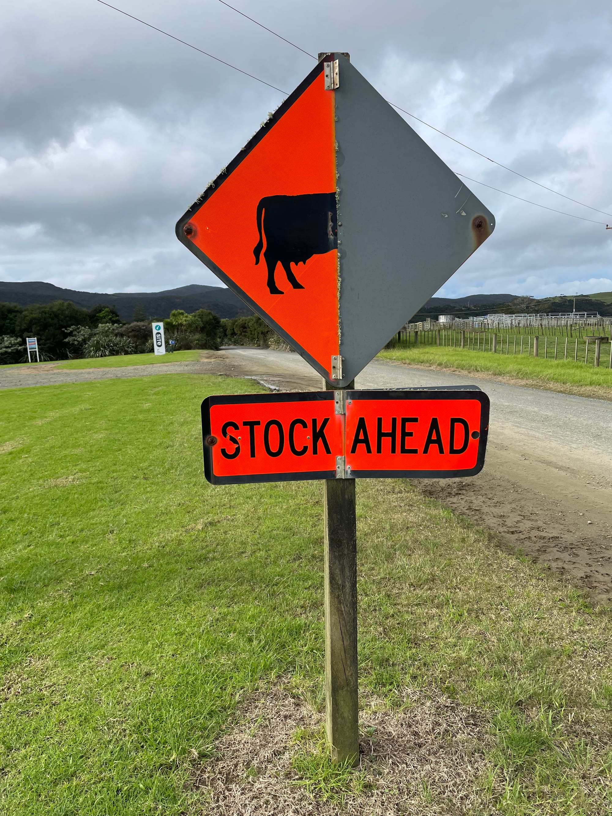 Yesterday’s photo was taken from my car window after returning from the Great Sand Dunes in Northland. A bit ironic there was no head on the stock sign, when it said: “stock ahead”.