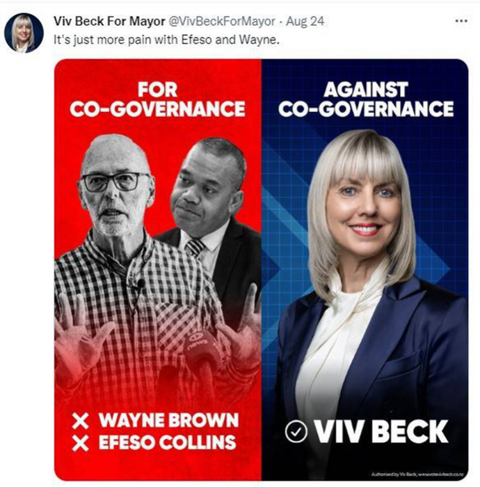 This is not a Trump campaign, but it is very important election for Auckland and the messages need to be firm. The campaign team made the decision to move to a strong online presence at this stage of the campaign, highlighting issues that are important to many people across the regions. Beck said the online advertisement has been removed.