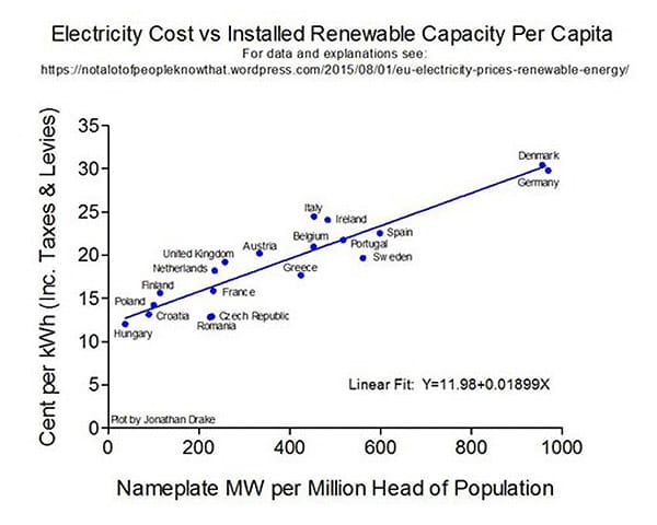 Firstly, the utter refusal to ever admit the staggering cost of ‘Net Zero’. Despite incontrovertible evidence from, well, everywhere in the world that’s tried it, that the degree of penetration of intermittent generation technology like wind and solar directly corresponds to a rise in household electricity bills, the Cultist denial is impenetrable. Rather than admit the obvious, they resort to ever-more-bizarre circumlocutions, such as blaming the rising bills on coal-fired power stations, despite the obvious fact that, when all power was coal-fired, electricity was orders of magnitude cheaper.