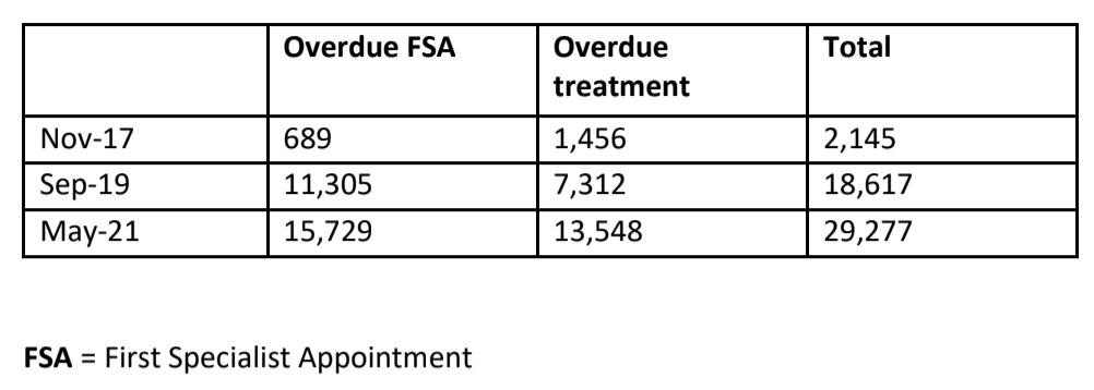 “But by 2019 that figure had surged to more than 18,000 people missing the four-month target.